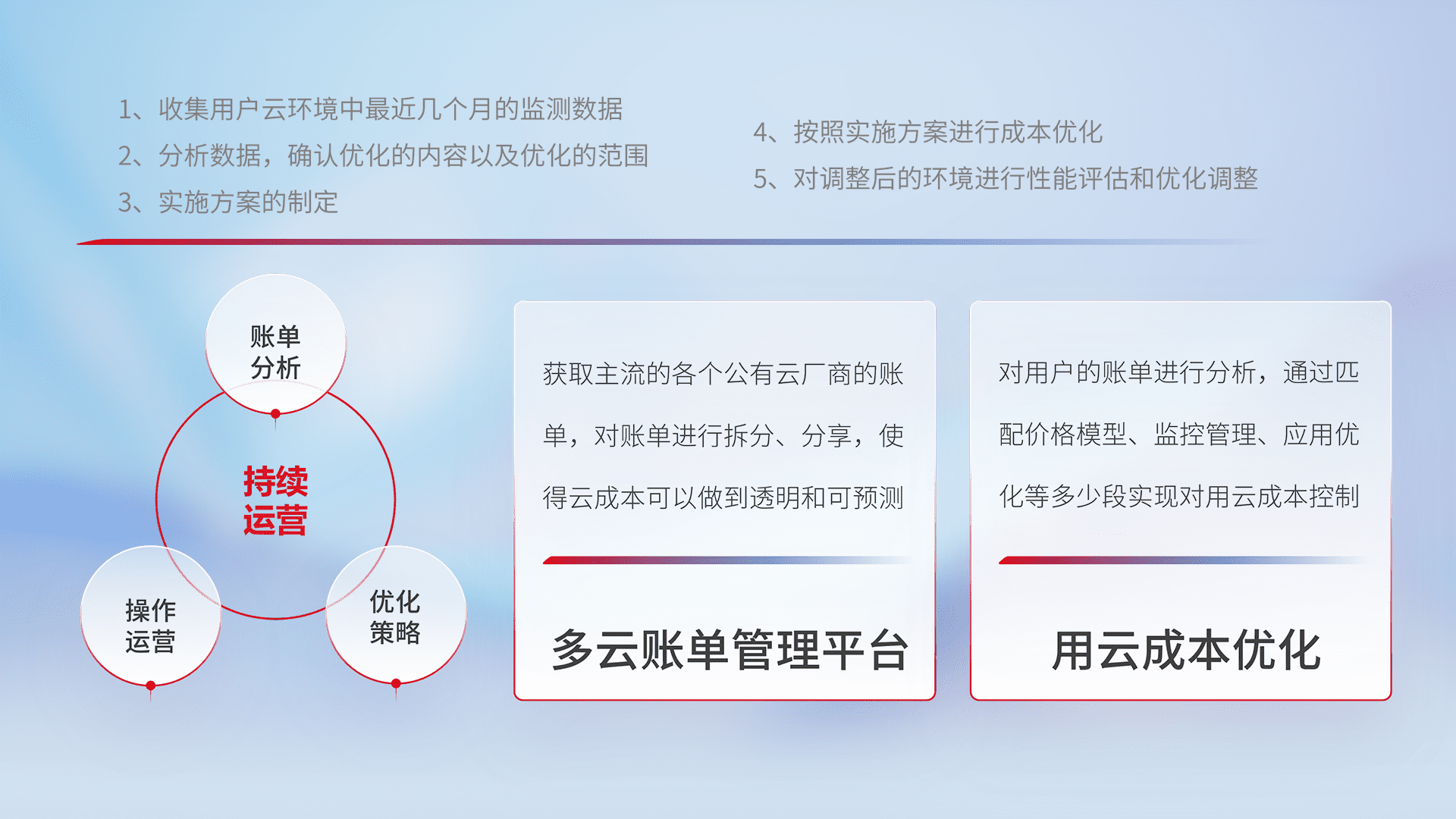 运用智能化工具分析云资源,,提供日常费用可视化工具,,,,自动账单拆分,,,成本优化云上费用,,,,降本增效。。