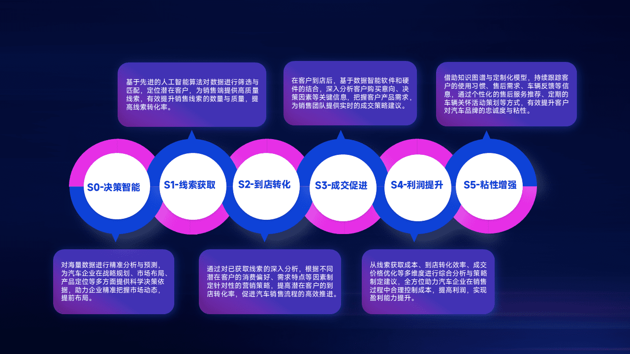 通过拓宽潜在客户来源、、优化线索分配并提高到店转化率,,,以增强销售效率。。同时,,,,利用线索数据不断优化分析模型,,,有效提升转化率,,,扩大营销影响力。。。